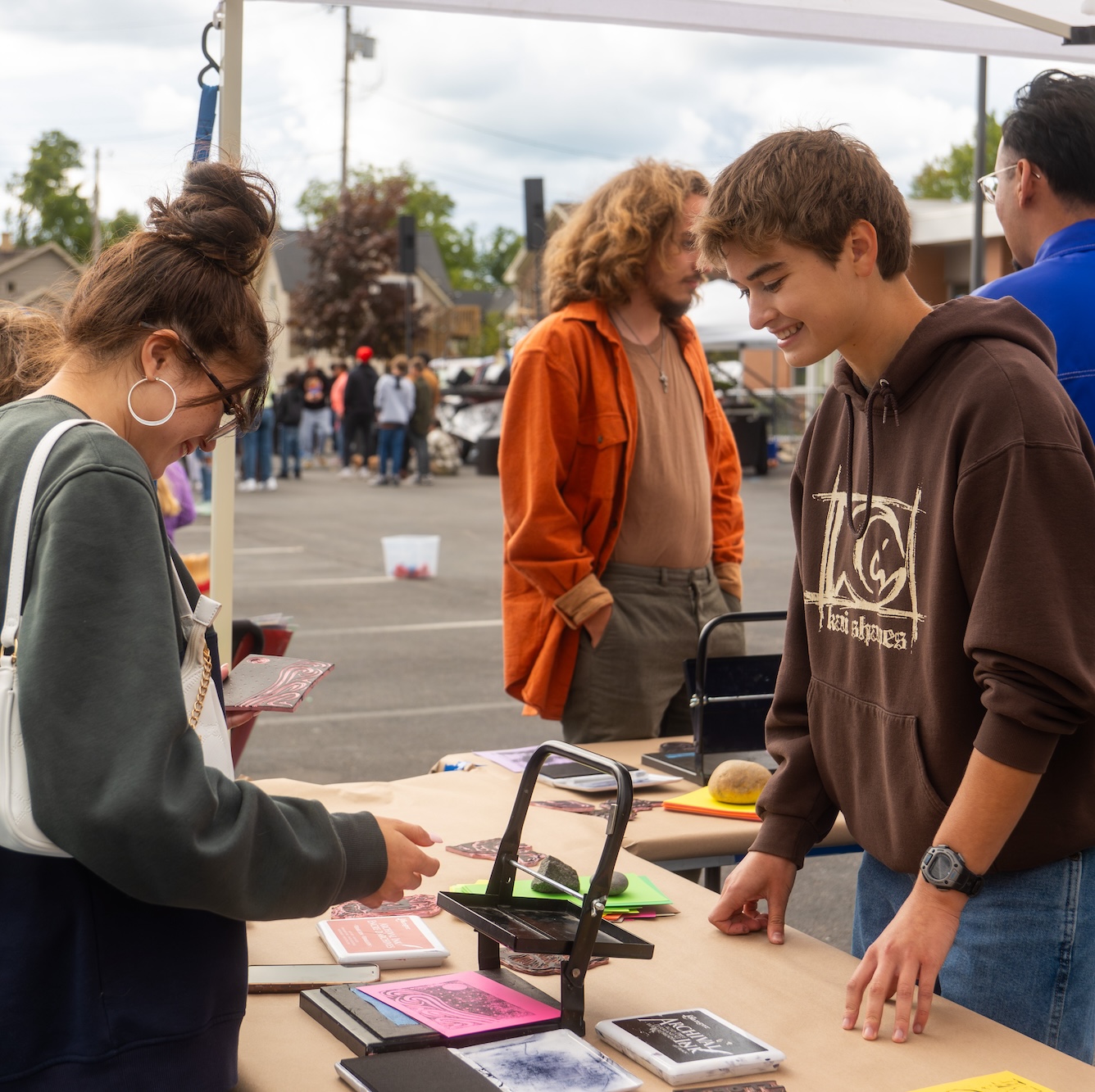 On Saturday, we offered a community printmaking event in collaboration with Tulip City Mural Festival. It was a joy to partner with 3sixty once again to provide free hands-on art activities amidst the fantastic mural painting, music, and dancing.