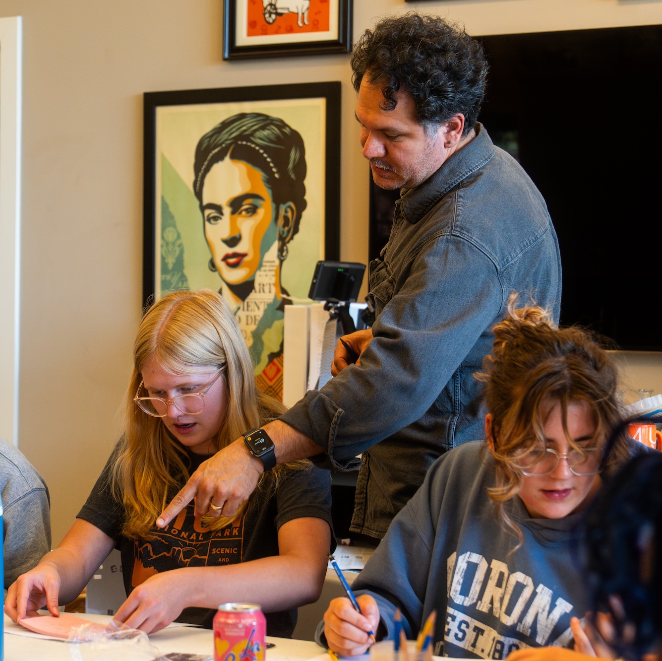 Last year, when we reached out about the possibility of him coming to Holland, Salvador Jiménez-Flores invited us to attend Grabadolandia Print Festival in Pilsen, IL. We happily obliged and spent 3 days in November with 15 students in Chicago. Grabadolandia is hosted at the National Museum of Mexican Art and organized by the Instituto Gráfico de Chicago, an activist art group, of which Salvador is an organizing member. We toured the murals of Pilsen as well as the Art Institute of Chicago; we participated in Grabadolandia; and Salvador hosted us for a delicious lunch in Pilsen.